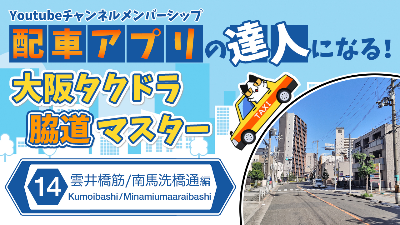 《大阪タクドラ脇道マスター》配車アプリの達人になる!(14)雲井橋筋・南馬洗橋通